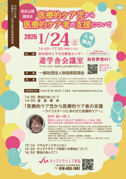 令和7年度医療的ケア児等支援体制構築事業 県民公開講演会 「医療的ケア児から医療的ケア者の支援について」を開催します