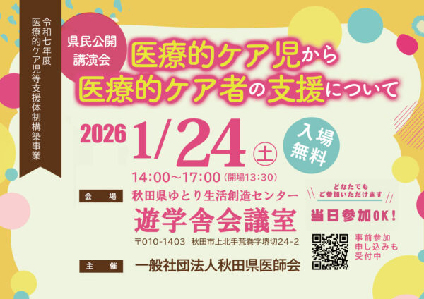 令和7年度医療的ケア児等支援体制構築事業 県民公開講演会 「医療的ケア児から医療的ケア者の支援について」を開催します